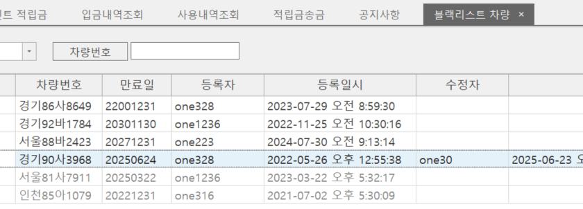 블랙리스트 차량 탭 시스템 개선