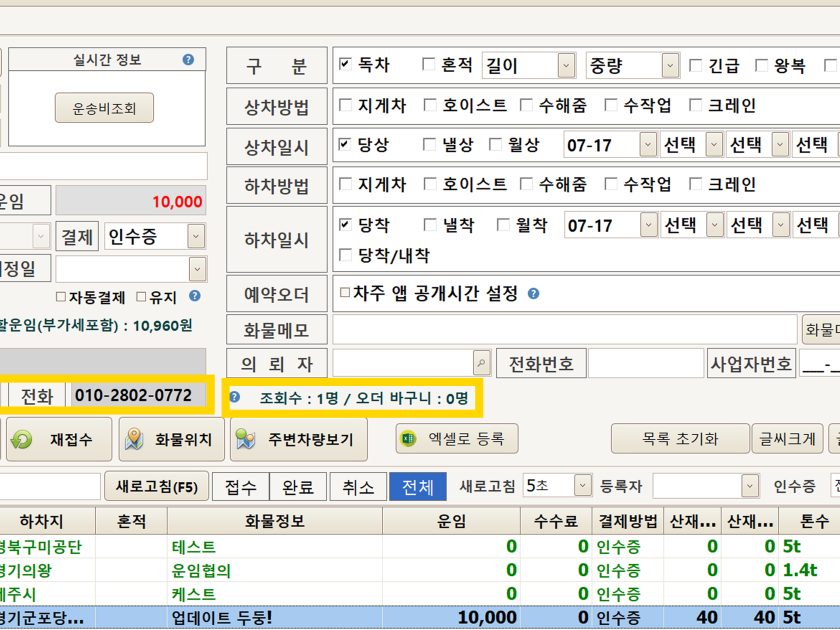 [간편접수] _ 목록 초기화 필수