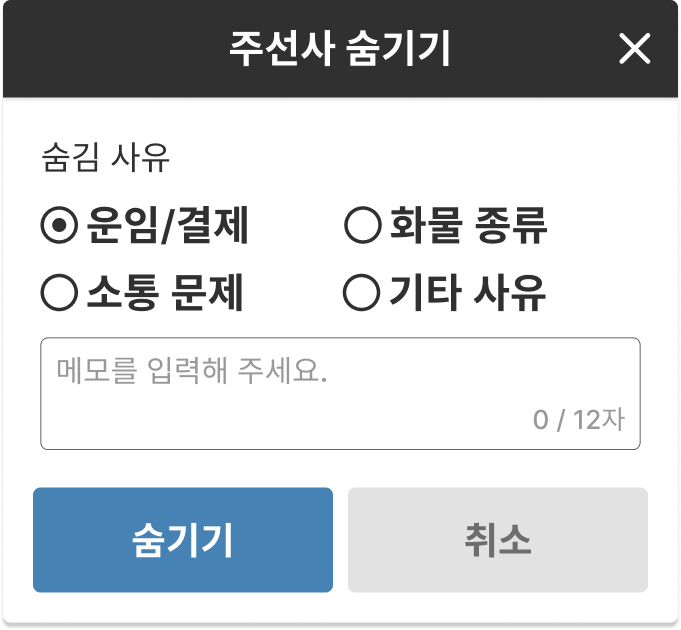 오더숨기기 제한 해제 ( 30 건 -> 무제한)