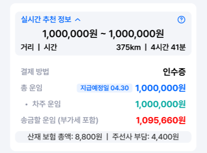 접수 / 완료 / 취소 오더의 경우에도 추천 운임 표기되도록 기능 추가