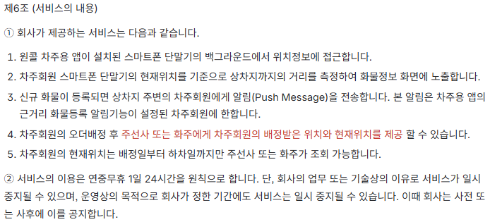개정된 약관은 원콜 홈페이지 및 원콜 서비스(차주앱, 주선앱, 간편접수) 내에서 확인하실 수 있습니다.