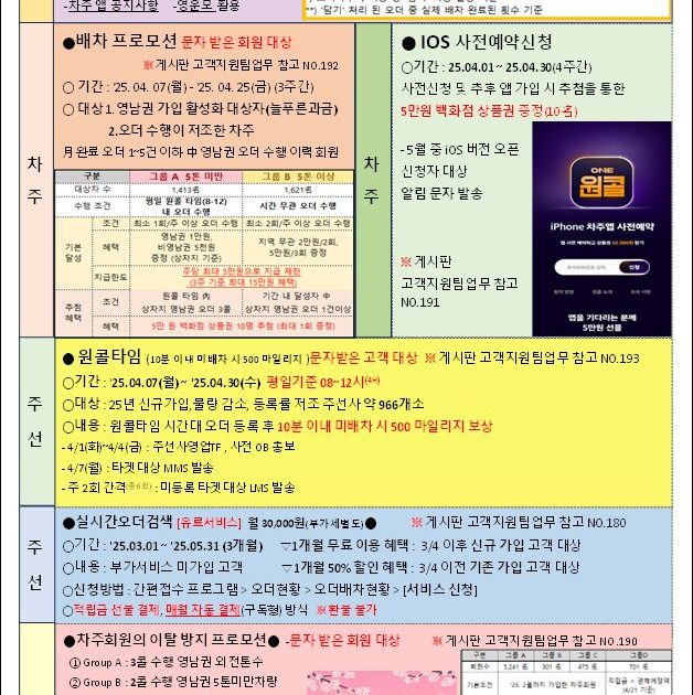 초고톤수(22t,25t) 회원 대상 타겟형 프로모션(3/24~4/6 2주간)