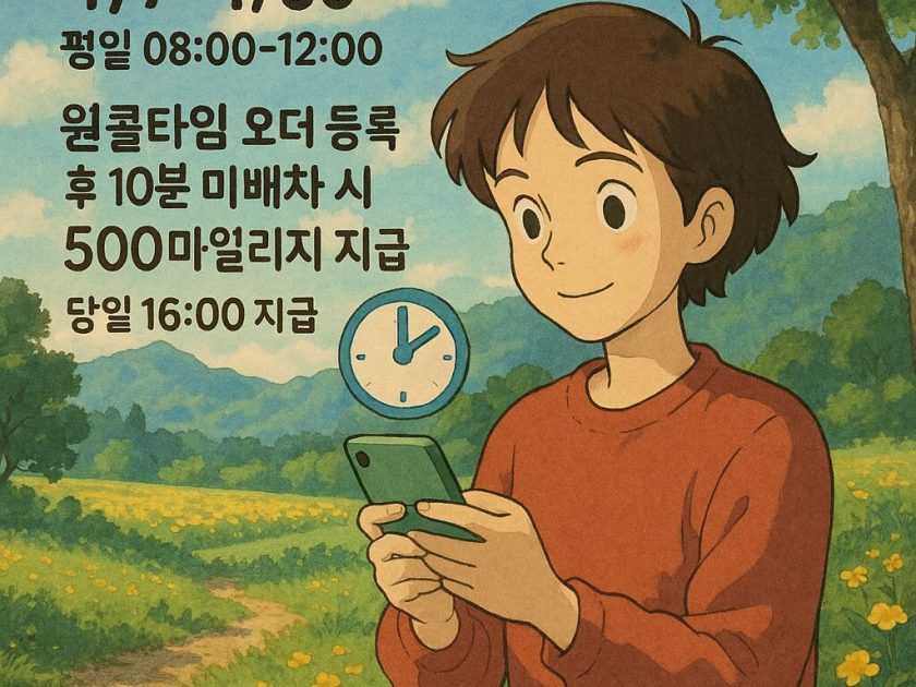내용 : 원콜타임 중 오더 등록 후 10분간 미배차 시 500 마일리지 지급