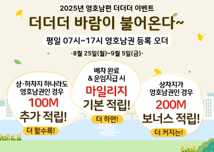 8월 25일(월) ~ 9월 5일(금) 기간 중 평일 07~17시 영호남 오더 ( 10분 내 취소 오더 제외 )