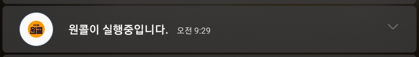 앱을 실행하게 되면 위치서비스가 실행되어 ‘원콜이 실행중입니다’ 아이콘과 알림메세지가 항상 나타납니다.