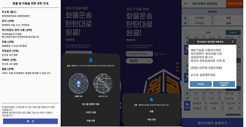 앱 설치 후 첫 실행시 앱에서 필요한 권한에 대해 안내하는 화면이 전체화면으로 변경되었습니다.