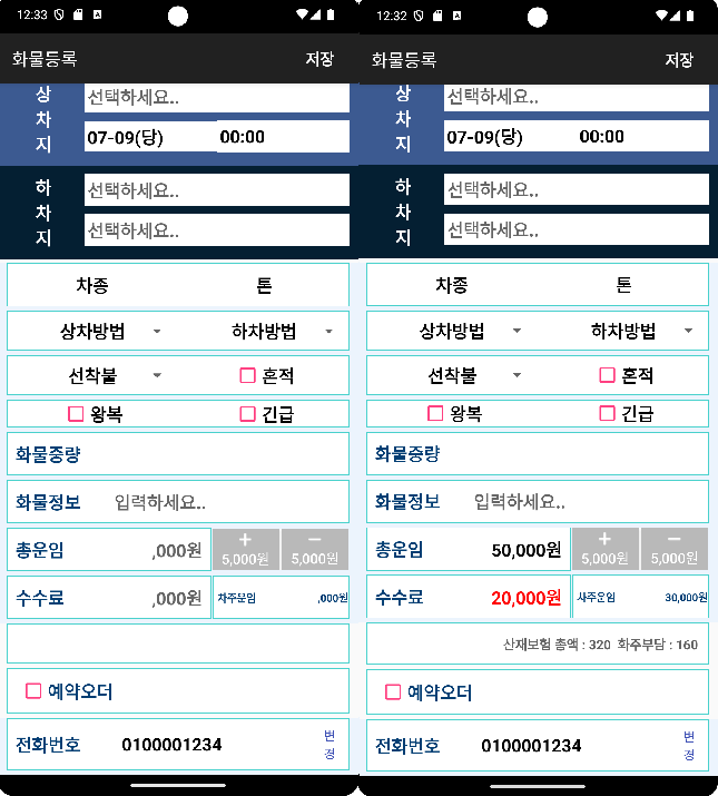원터치배차의 상세화면이 변경되었습니다.
