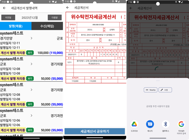 (기존 배정내역에서 전자세금계산서 이미지를 확인 하고 공유 할 수 있는 기능과 동일합니다.)