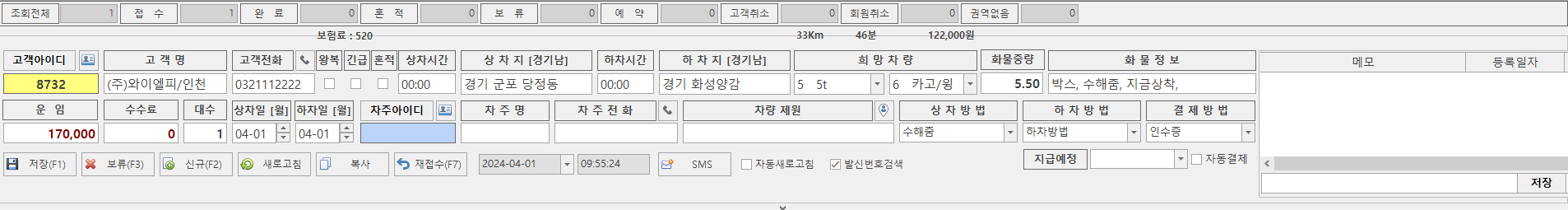 거리 및 운송비 조회 버튼을 따로 누르지 않아도 바로 조회 됩니다.