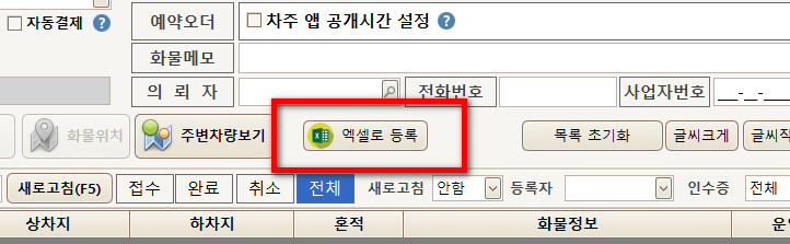 대량오더 등록 항목이 추가되었습니다. (체크 시 간편접수에서 엑셀로 화물 등록 가능)