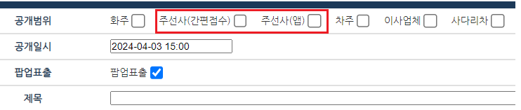 공개범위에 “주선사(앱)” 항목이 추가되었습니다.