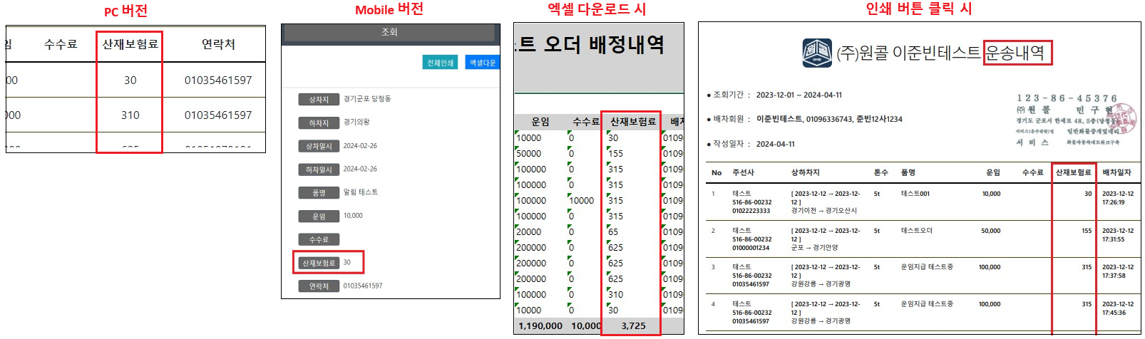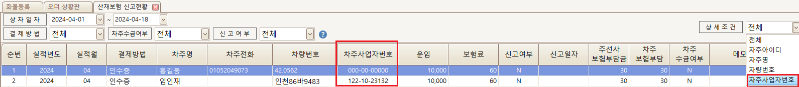 “차주 – 운송내역 조회” 메뉴에 산재보험 항목이 추가되었습니다.