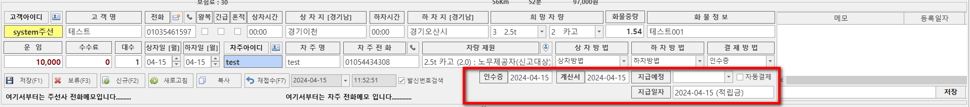 인수증 업로드일, 계산서 발행일, 지급일자 항목이 추가되었습니다.