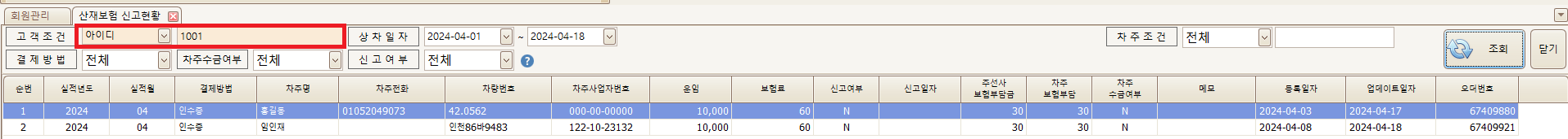 주선사의 산재보험 신고현황을 확인할 수 있습니다. (센터 프로그램 > 기타 > 산재보험 신고현황)