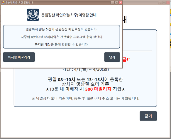 운송비 지급 요청 알림팝업 크기를 축소했습니다.