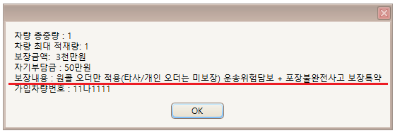 오케이 요금제 가입자의 적재물보험 가입내용 확인 시, 일반요금제와 다른 내용이 표출됩니다. (보장내용)