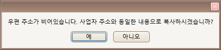 해당 기능은 사업자주소 데이터가 등록되어 있고, 우편주소 데이터가 등록되지 않은 상태에서만 동작합니다.