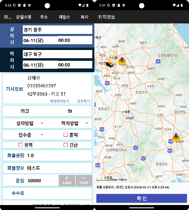 기사최종위치가 현재 화물위치로 변경되었습니다.