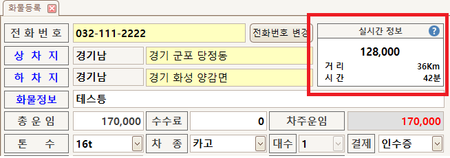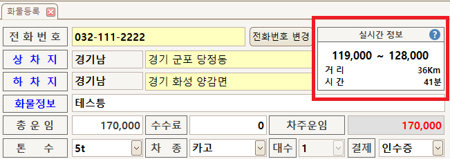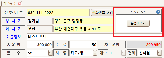 *운송비조회 버튼 클릭 시 추천운임 정보 표현 (표현방법은 위 내용과 동일)