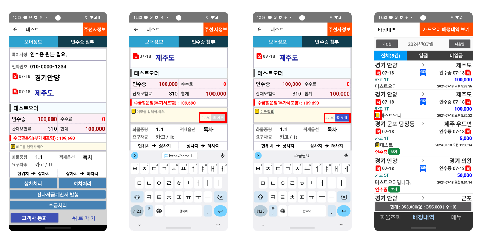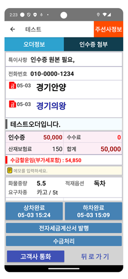 인수증을 등록하거나 계산서를 발행하고 목록으로 돌아오면 목록이 갱신되어 바로 확인 할 수 있습니다.