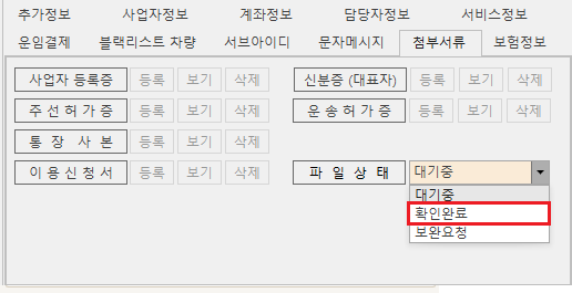 단 첨부서류 등록되지 않은 고객 첨부서류 확인 완료 상태에서도 파일등록 가능