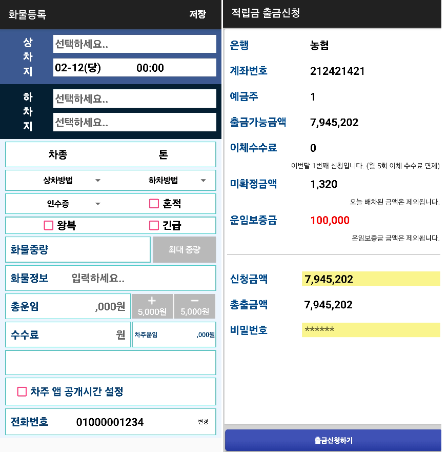 조회수: 34 주선사용 앱 – Version 77 # 화물등록 하차일자 기본세팅이 공란으로 변경되었습니다. 예약일자 문구가 수정되었습니다. # 출금신청 운임보증금 항목이 추가되었습니다.