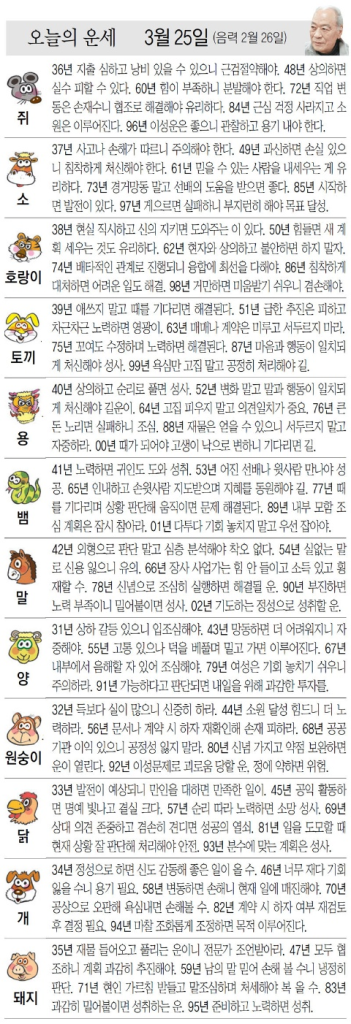 오늘의 운세 3월 25일 2025년 03월 25일 송영규 모두의공원 조회수: 160 One comment 잘 보았습니다! 답글을 남기기 위해 로그인하기 답글 남기기 응답 취소댓글을 달기 위해서는 로그인해야합니다. 검색