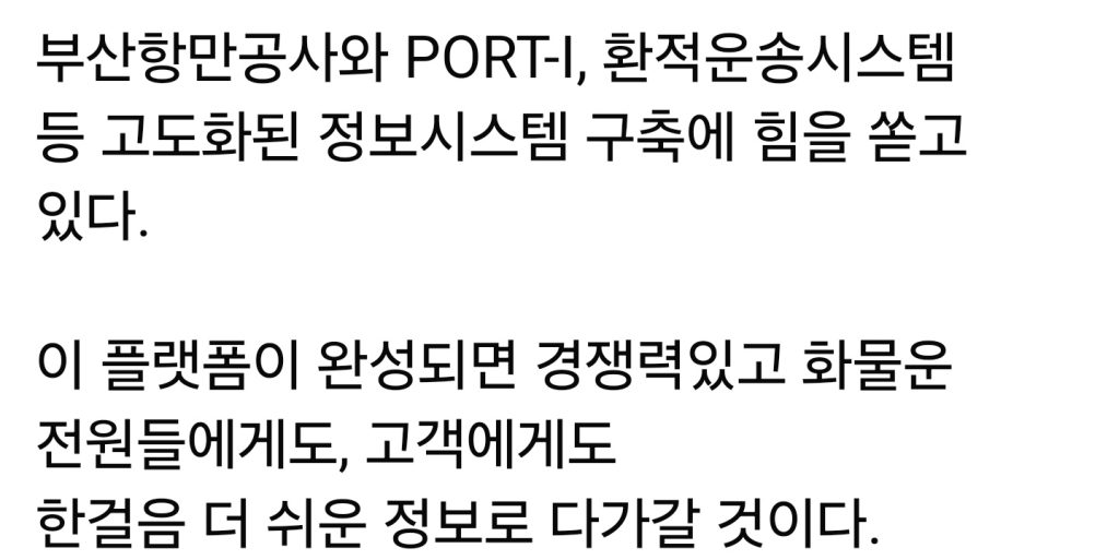 Port-i : 부산항에서 고객이 쉽고 빠르게 환적화물을 처리할 수 있도록 개발한 블록체인 기반 환적모니터링 시스템으로 주요 기능으로는 선박 모니터링 및 이상감지, 화물 모니터링 및 이상탐지, 부산항 전체 터미널(10개)의 통합선석 스케줄 제공이 있으며, 이러한 서비스를통해 이용 선사는 적기에 환적화물을 처리하여, 선박 적재율 증가 및 추가 수익 증대가 기대됨