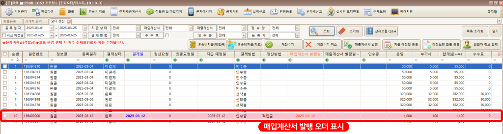 - 세금계산서 발행 건 구분하여 컬러 표기되어 표출
