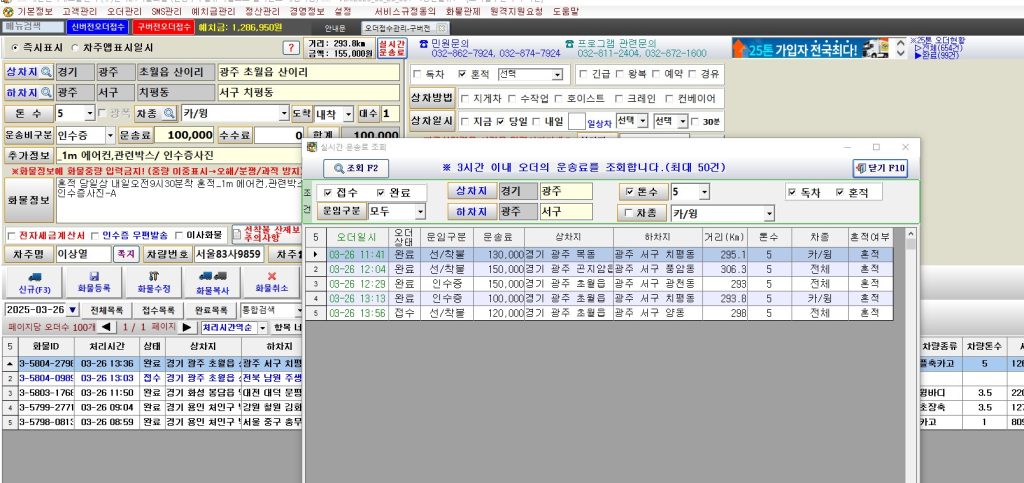 – 최근 3시간 이내 오더에 대해 최대 50건 검색 가능