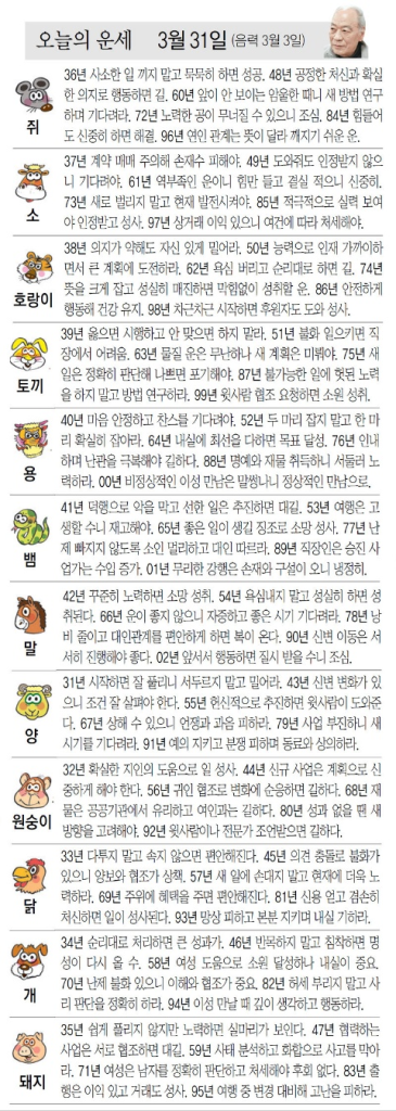 오늘의 운세 (25.03.31)