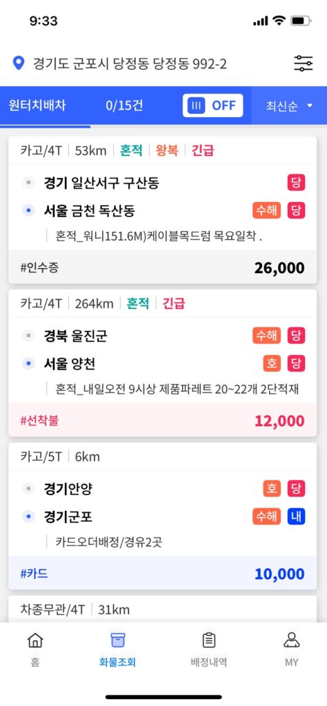 | 원콜 | 기본적인 화물-차주 매칭 | 낮음 |