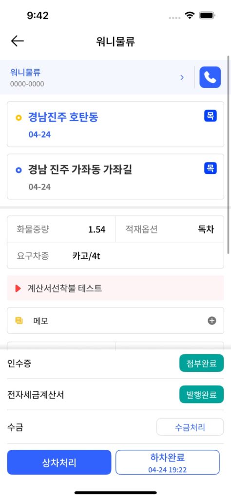- 화물상세 화면에서 직접 ‘담기’ 기능