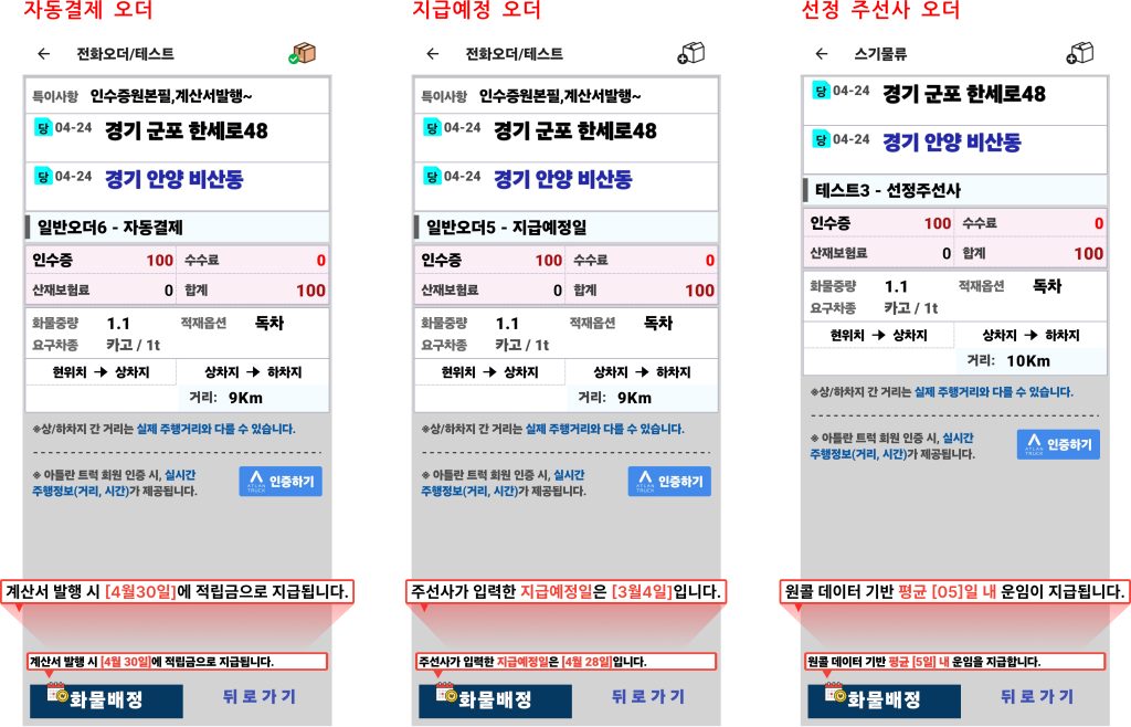 | ② 지급예정 오더 | 주선사가 오더 등록 시, 직접 지급 일자를 지정 |
