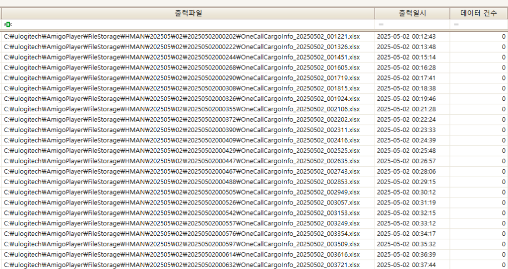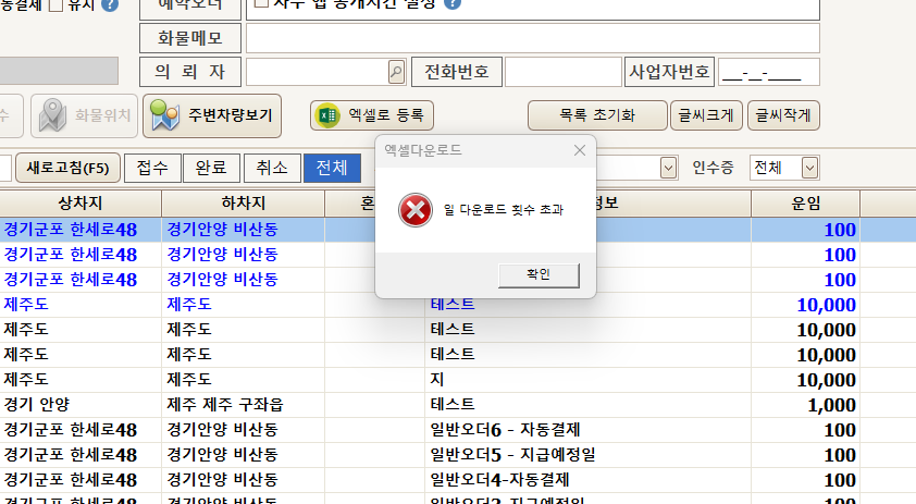 1분 간격으로 자동으로 엑셀 다운로드를 하여 화물맨에 등록하는 방식 입니다.