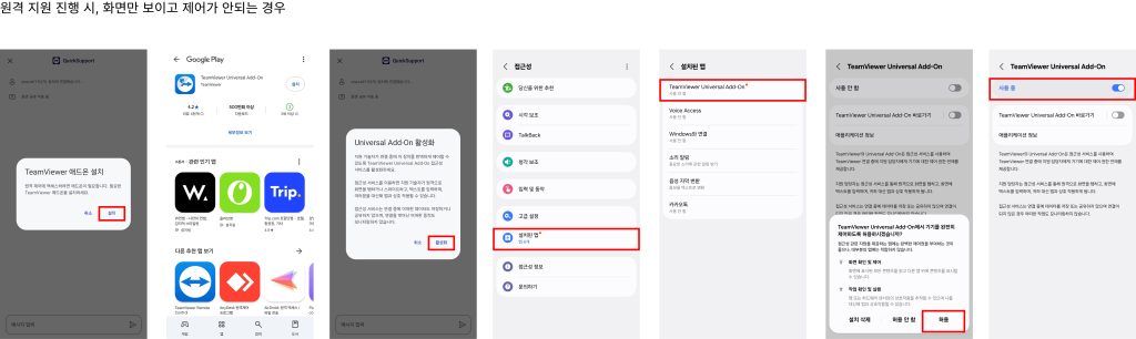 - 4. 접근성 > 설치된 앱 > 팀뷰어 universal add-on 클릭