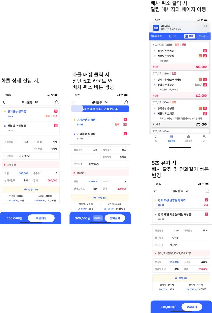 - 화물 상세를 통한 경우, 5초 이내 배차 여부를 선택할 수 있도록 기능 추가 (*원터치 배차 제외)