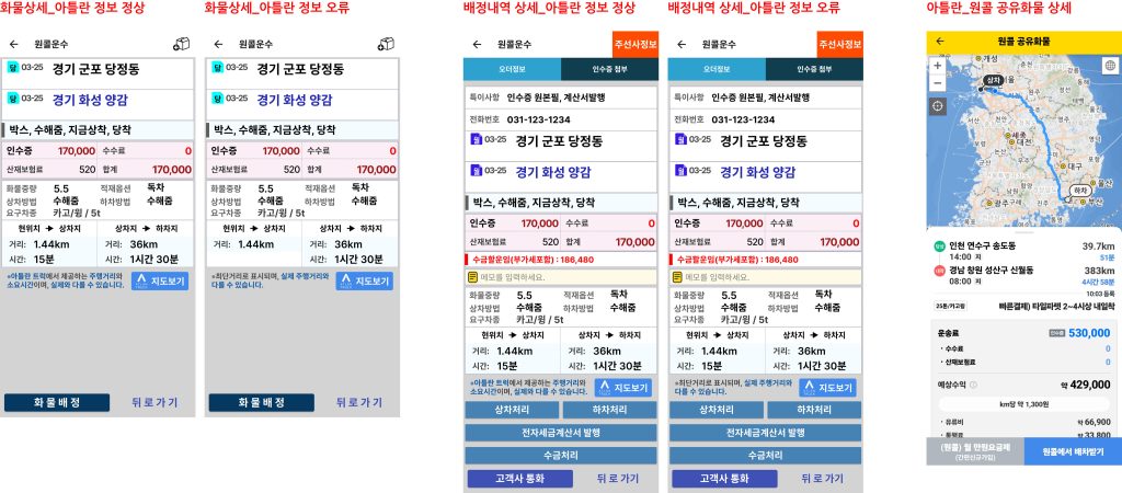 조회수: 88 차주앱 아틀란 인증 회원의 경우, 화물상세 & 배정상세 화면 내 지도보기 버튼 추가 지도보기 클릭 시, 아틀란 앱으로 이동하여 원콜 공유화물 상세 화면 보여짐 아틀란 미인증 회원인 경우, 기존과 동일하게 [인증하기] 버튼