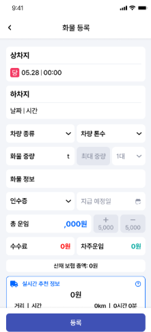 - 필수정보 입력 5단계 스텝 → 30초 만에 화물 등록 가능!
