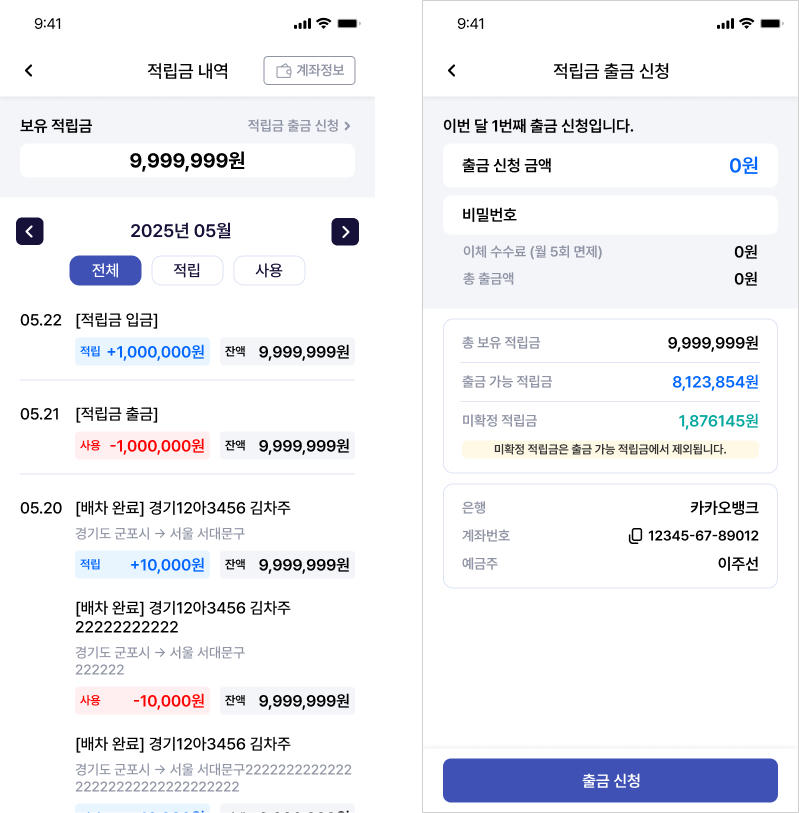 - 적립금 내역, 적립금 출금신청 메뉴 > IOS 주선앱과 동일하게 페이지 개선