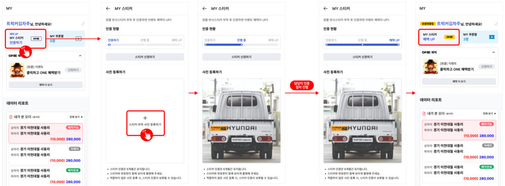 - 스티커와 번호판이 보이는 이미지 업로드 진행 시, 관리자 확인 후 상태 변경됩니다.