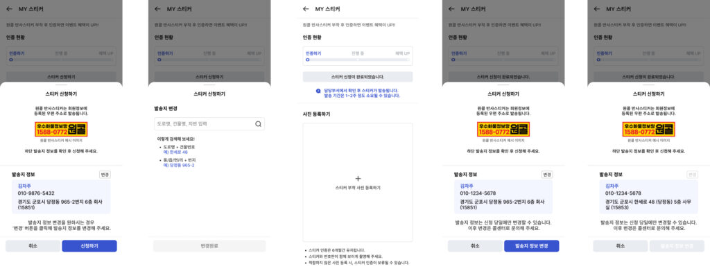 - 스티커신청 → MY스티커 페이지에서 스티커 신청하기 완료 상태