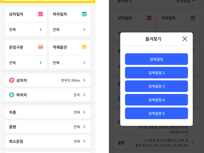 검색설정 > 즐겨찾기 기능 추가